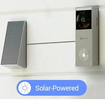 A Solar Powered Video Door Bell works exactly the same as the battery powered system. Except the sun will keep the battery charged meaning it will carry on operating as normal for longer.